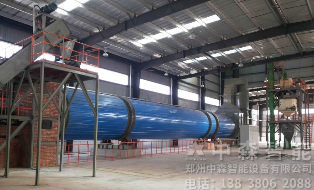 物料由供料裝置進(jìn)入回轉(zhuǎn)滾筒的內(nèi)層,實(shí)現(xiàn)順流烘干,物料在內(nèi)層的抄板下不斷抄起、散落呈螺旋行進(jìn)式實(shí)現(xiàn)熱交換,物料移動(dòng)至內(nèi)層的另一端進(jìn)入中 層,進(jìn)行逆流烘干,物料在中層不斷地被反復(fù)揚(yáng)進(jìn),呈進(jìn)兩步退一步的行進(jìn)方式,物料在中層既充分吸收內(nèi)層滾筒散發(fā)的熱量,又吸收中層滾筒的熱量,同時(shí)又延長(zhǎng) 了干燥時(shí)間,物料在此達(dá)到預(yù)期干燥狀態(tài)。