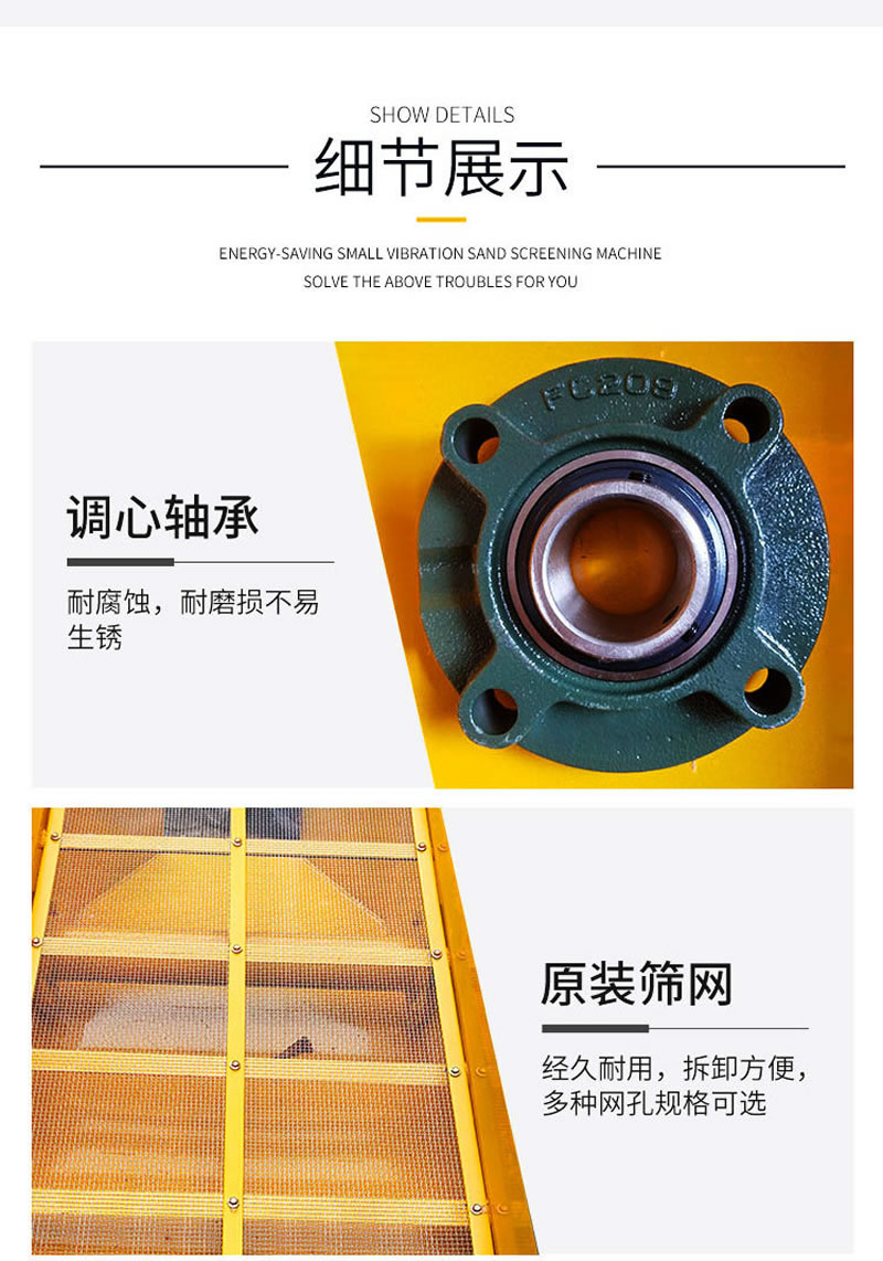 2、電動篩沙機的組成部分:電機、傳送帶、機架、料斗、篩網、傳送桿。本機用于公路,鐵路建設,房地產等建設過程中,對沙石進行清洗,分離,達到干凈均勻,符合國家《建筑用砂》《建筑用卵石、碎石》特殊建設標準要求。