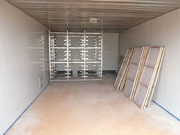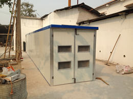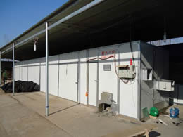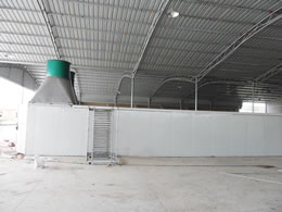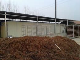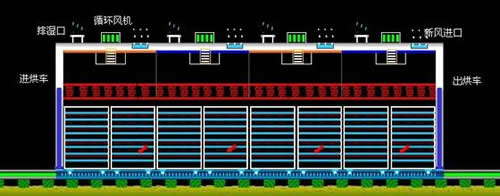 該干燥設備采用的是連續性烘干作業,主要有干燥室、烘干車、料盤、供風系統、熱風爐、自動電控系統等構成。干燥室采用金屬保溫板或磚混結構,烘干盤采用金屬或其他材料制作。