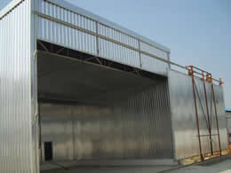 全鋁合金體木材干燥窯窯體采用鋁合金型材做骨架,外板為鋁合金瓦楞板,內板為鋁合金壓型板,中間可根據用戶需要采用18-40容重玻璃絲棉保溫。型材與型材、型材與鋁板、鋁板與鋁板間的連接采用不銹鋼螺栓、鋁合金焊條、不銹鋼焊條焊接。窯體堅固耐用,保溫良好。