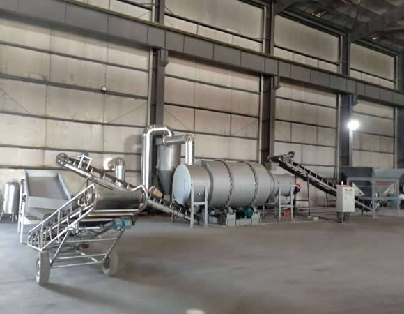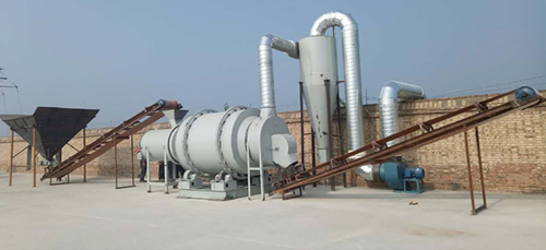 在筒體內(nèi)的石英砂會(huì)被內(nèi)部安裝的擋板,統(tǒng)稱(chēng)揚(yáng)料板揚(yáng)起,由于揚(yáng)料板設(shè)計(jì)的形式多樣,石英砂會(huì)在不同的高度被揚(yáng)起,形成錯(cuò)落的石英砂流,高溫氣流就從其中穿過(guò),增加了與石英砂的接觸時(shí)間和接觸面,使內(nèi)部的水分干燥更快,如此反復(fù)循環(huán)幾個(gè)回合之后,石英砂與水分徹底分離,水分受熱在筒體的頂部被風(fēng)機(jī)抽出,干燥的石英砂則從下料口出料。被抽出的高濕氣體種會(huì)含有一些石英砂粉末顆粒,排放到環(huán)境種會(huì)用污染,一般需要經(jīng)過(guò)旋風(fēng)除塵器過(guò)濾下即可。